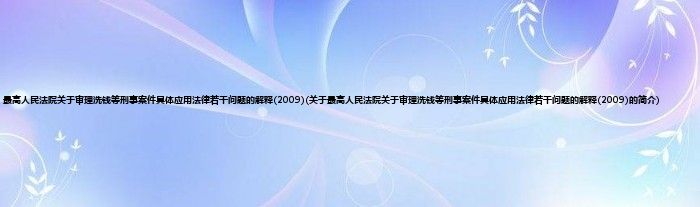 本文关于最高人民法院关于审理洗钱等刑事案件具体应用法律若干问题的解释(2009)的简介就讲解完毕,希望对大家有所帮助。