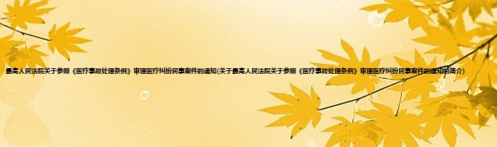 大家好,最高人民法院关于参照《医疗事故处理条例》审理医疗纠纷民事案件的通知,关于最高人民法院关于参照《医疗事故处理条例》审理医疗纠纷民事案件的通知的简介很多人还不知道,现在让我们一起来看看吧!