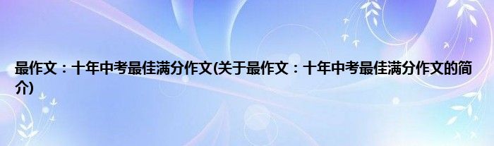 本文关于最作文:十年中考最佳满分作文的简介就讲解完毕,希望对大家有所帮助。