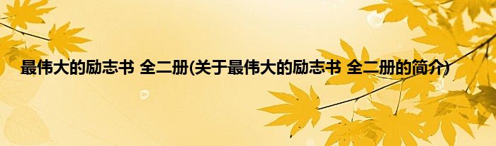 本文关于最伟大的励志书 全二册的简介就讲解完毕,希望对大家有所帮助。