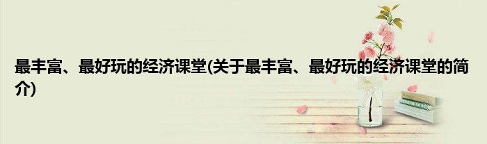 大家好,最丰富、最好玩的经济课堂,关于最丰富、最好玩的经济课堂的简介很多人还不知道,现在让我们一起来看看吧!