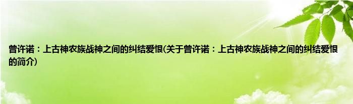 大家好,曾许诺:上古神农族战神之间的纠结爱恨,关于曾许诺:上古神农族战神之间的纠结爱恨的简介很多人还不知道,现在让我们一起来看看吧!