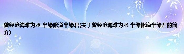 本文关于曾经沧海难为水,半缘修道半缘君的简介就讲解完毕,希望对大家有所帮助。