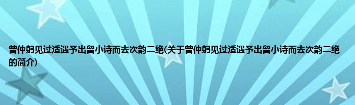 本文关于曾仲躬见过适遇予出留小诗而去次韵二绝的简介就讲解完毕,希望对大家有所帮助。