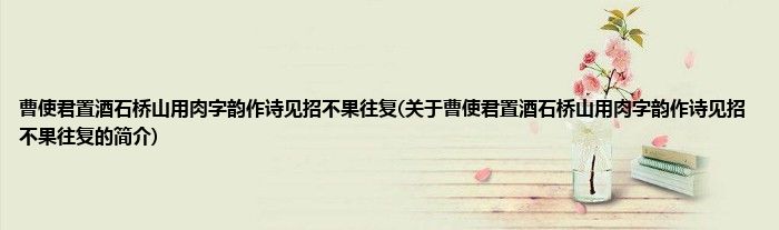 本文关于曹使君置酒石桥山用肉字韵作诗见招不果往复的简介就讲解完毕,希望对大家有所帮助。