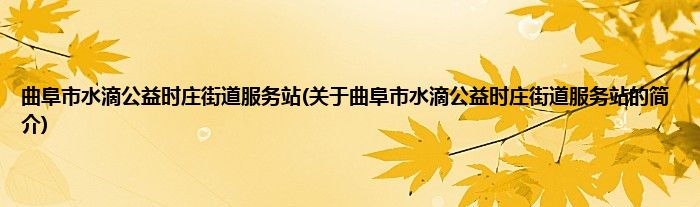 本文关于曲阜市水滴公益时庄街道服务站的简介就讲解完毕,希望对大家有所帮助。