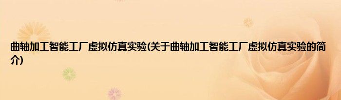 大家好,曲轴加工智能工厂虚拟仿真实验,关于曲轴加工智能工厂虚拟仿真实验的简介很多人还不知道,现在让我们一起来看看吧!