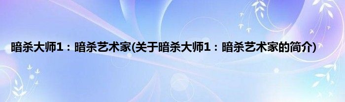 本文关于暗杀大师1:暗杀艺术家的简介就讲解完毕,希望对大家有所帮助。