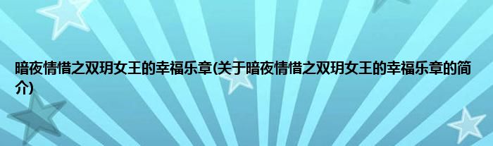 本文关于暗夜情惜之双玥女王的幸福乐章的简介就讲解完毕,希望对大家有所帮助。