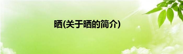 本文关于晒的简介就讲解完毕,希望对大家有所帮助。
