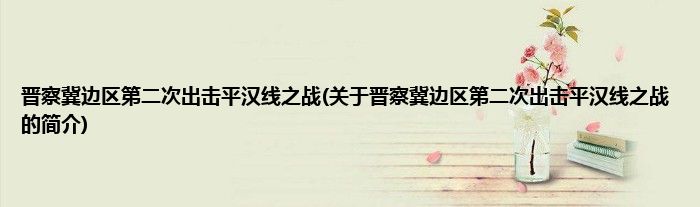 大家好,晋察冀边区第二次出击平汉线之战,关于晋察冀边区第二次出击平汉线之战的简介很多人还不知道,现在让我们一起来看看吧!