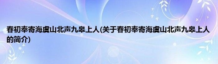 本文关于春初奉寄海虞山北声九皋上人的简介就讲解完毕,希望对大家有所帮助。