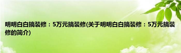 本文关于明明白白搞装修:5万元搞装修的简介就讲解完毕,希望对大家有所帮助。