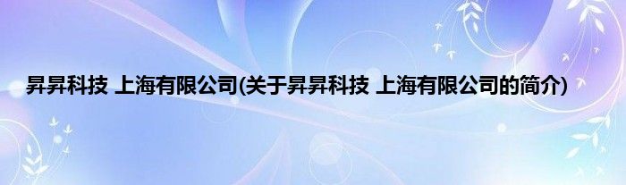 本文关于昇昇科技 上海有限公司的简介就讲解完毕,希望对大家有所帮助。