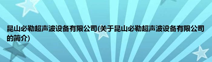 本文关于昆山必勒超声波设备有限公司的简介就讲解完毕,希望对大家有所帮助。