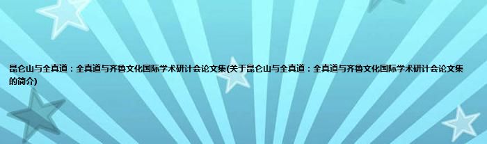 本文关于昆仑山与全真道:全真道与齐鲁文化国际学术研计会论文集的简介就讲解完毕,希望对大家有所帮助。