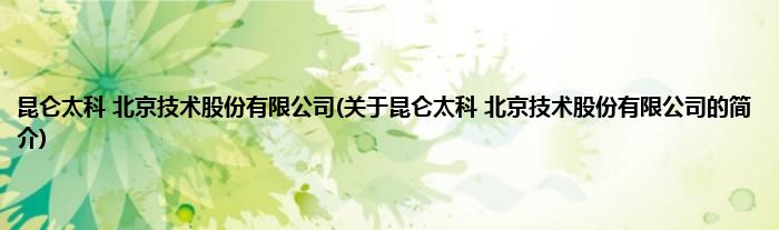 昆仑太科北京技术股份有限公司(关于昆仑太科北京技术股份有限公司的简介)