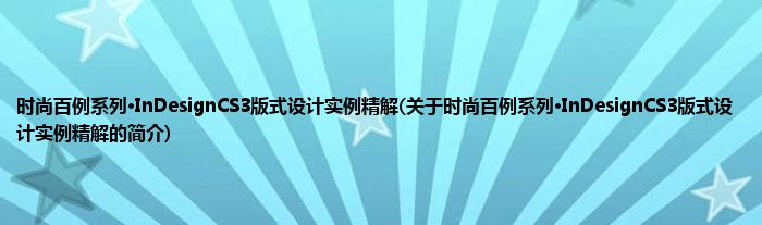 本文关于时尚百例系列·InDesignCS3版式设计实例精解的简介就讲解完毕,希望对大家有所帮助。