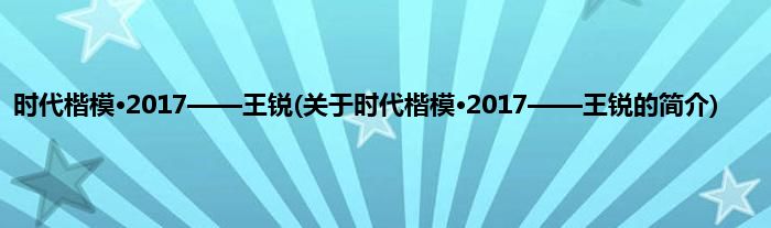 本文关于时代楷模·2017——王锐的简介就讲解完毕,希望对大家有所帮助。