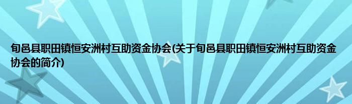 1、 旬邑县职田镇恒安洲村互助资金协会是2017年5月18日成立的社会团体。