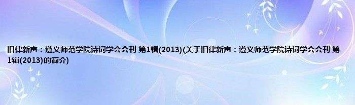 本文关于旧律新声:遵义师范学院诗词学会会刊 第1辑(2013)的简介就讲解完毕,希望对大家有所帮助。
