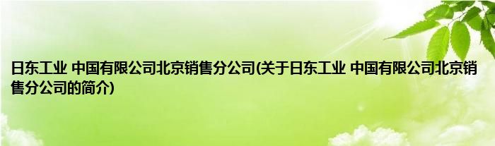 本文关于日东工业 中国有限公司北京销售分公司的简介就讲解完毕,希望对大家有所帮助。