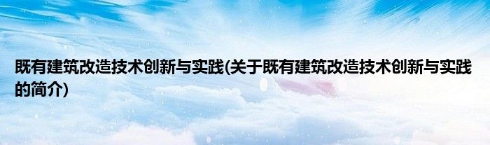 本文关于既有建筑改造技术创新与实践的简介就讲解完毕,希望对大家有所帮助。