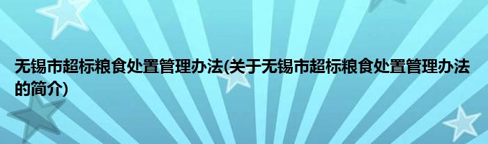 本文关于无锡市超标粮食处置管理办法的简介就讲解完毕,希望对大家有所帮助。