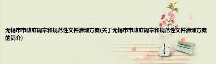 大家好,无锡市市政府规章和规范性文件清理方案,关于无锡市市政府规章和规范性文件清理方案的简介很多人还不知道,现在让我们一起来看看吧!