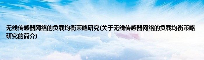 无线传感器网络的负载均衡策略研究(关于无线传感器网络的负载均衡策略研究的简介)
