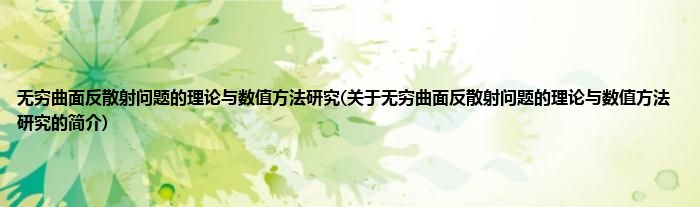 大家好,无穷曲面反散射问题的理论与数值方法研究,关于无穷曲面反散射问题的理论与数值方法研究的简介很多人还不知道,现在让我们一起来看看吧!