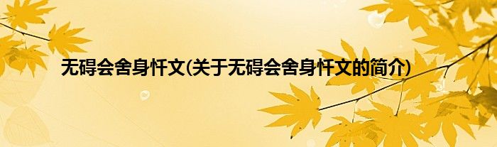大家好,无碍会舍身忏文,关于无碍会舍身忏文的简介很多人还不知道,现在让我们一起来看看吧!