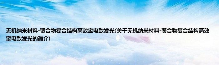 本文关于无机纳米材料-聚合物复合结构高效率电致发光的简介就讲解完毕,希望对大家有所帮助。