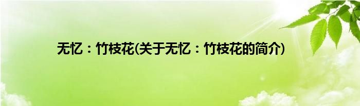 本文关于无忆:竹枝花的简介就讲解完毕,希望对大家有所帮助。