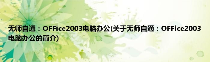 大家好,无师自通:OFFice2003电脑办公,关于无师自通:OFFice2003电脑办公的简介很多人还不知道,现在让我们一起来看看吧!