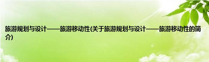 旅游规划与设计——旅游移动性(关于旅游规划与设计——旅游移动性的简介)