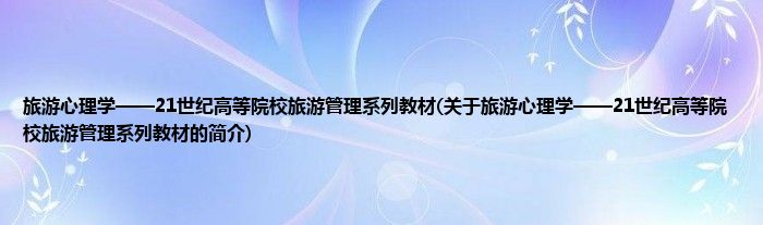 大家好,旅游心理学——21世纪高等院校旅游管理系列教材,关于旅游心理学——21世纪高等院校旅游管理系列教材的简介很多人还不知道,现在让我们一起来看看吧!