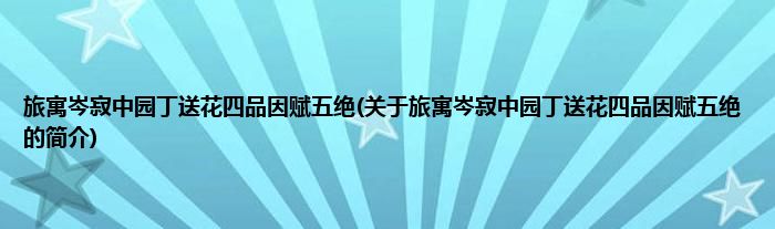 本文关于旅寓岑寂中园丁送花四品因赋五绝的简介就讲解完毕,希望对大家有所帮助。