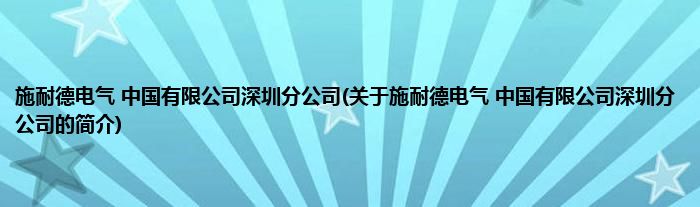 本文关于施耐德电气 中国有限公司深圳分公司的简介就讲解完毕,希望对大家有所帮助。