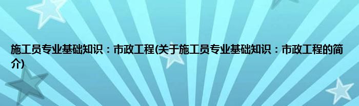 施工员专业基础知识:市政工程(关于施工员专业基础知识:市政工程的简介)