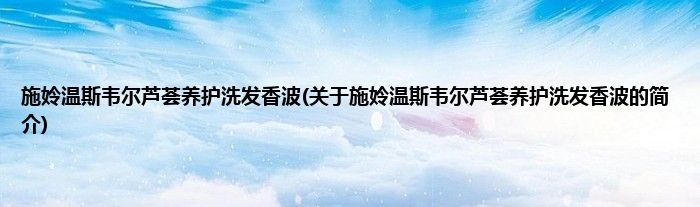 大家好,施姈温斯韦尔芦荟养护洗发香波,关于施姈温斯韦尔芦荟养护洗发香波的简介很多人还不知道,现在让我们一起来看看吧!