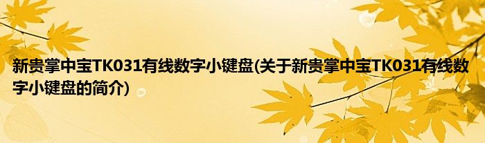 1、 新贵掌中宝TK031有线数字小键盘是一款数字键盘。