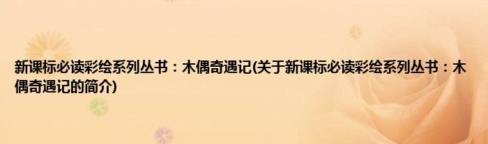 本文关于新课标必读彩绘系列丛书:木偶奇遇记的简介就讲解完毕,希望对大家有所帮助。