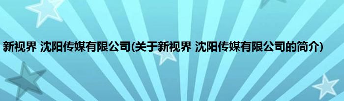 新视界沈阳传媒有限公司(关于新视界沈阳传媒有限公司的简介)
