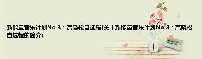 本文关于新能量音乐计划No.3:高晓松自选辑的简介就讲解完毕,希望对大家有所帮助。