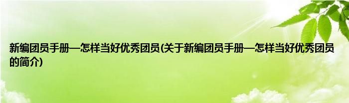 本文关于新编团员手册—怎样当好优秀团员的简介就讲解完毕,希望对大家有所帮助。