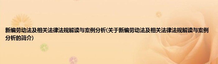 大家好,新编劳动法及相关法律法规解读与案例分析,关于新编劳动法及相关法律法规解读与案例分析的简介很多人还不知道,现在让我们一起来看看吧!