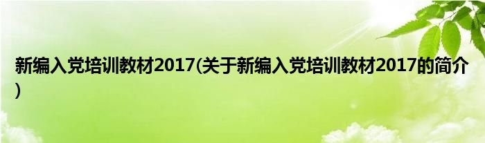 本文关于新编入党培训教材2017的简介就讲解完毕,希望对大家有所帮助。