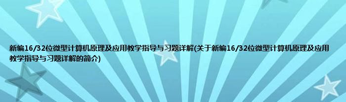 本文关于新编16/32位微型计算机原理及应用教学指导与习题详解的简介就讲解完毕,希望对大家有所帮助。