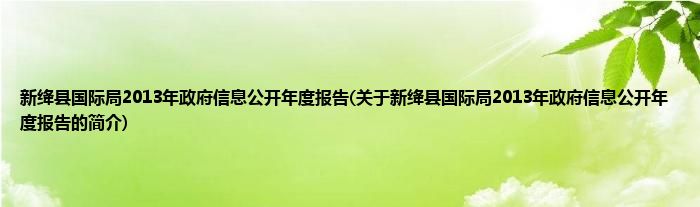 本文关于新绛县国际局2013年政府信息公开年度报告的简介就讲解完毕,希望对大家有所帮助。